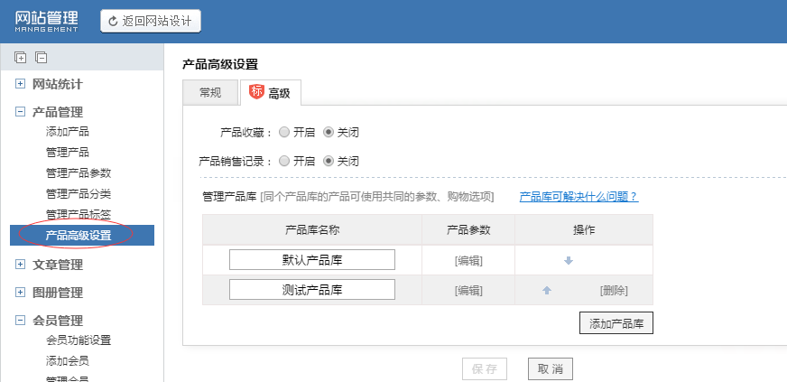 1、网站商城标准版用户可以添加多个产品库,同个产品库可使用共同的参数、购物选项