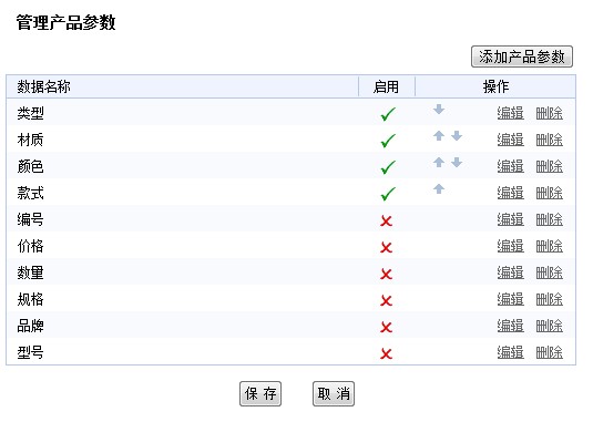 (1)启用与禁用参数:对于一些产品参数,可能暂时不使用,可以采用“禁用”的方式,直接点击按钮,即可将参数启用或禁用。