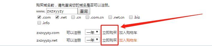 输入你想注册的域名,查询该域名是否可以注册,如果可以,就可以点击立即购买了。
