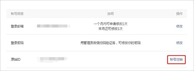 个人类型:进入小程序后台-设置-原始ID-注销账号。同意协议后,扫码即可进入账号冻结期。