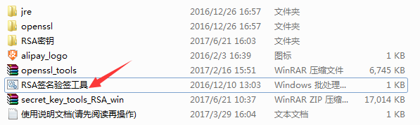1.3.4、下载该工具后,解压并打开文件夹,运行“RSA签名验签工具.bat”(WINDOWS)或“RSA签名验签工具.command”(MAC_OSX)