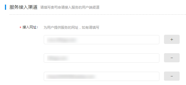 点击“批量签约后”,需要填写相关营业信息,其中“接入网址”填写您的电脑网站域名和手机网站域名。