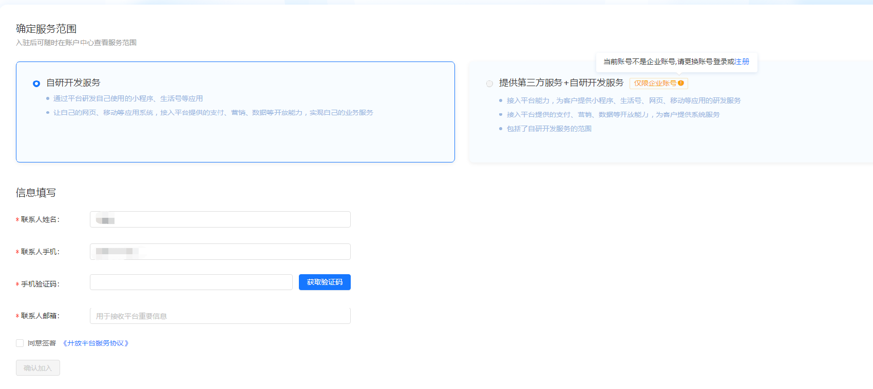 1.1、首先,登录支付宝开放平台,登录后,如果您是首次登陆,会让您选择入驻账号类型,选择“自研开发者”即可。