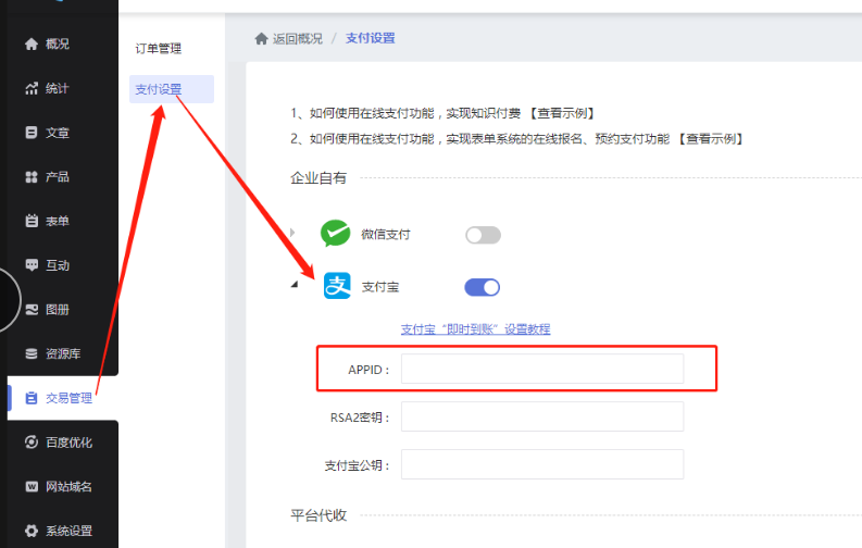 APPID需要填写在建站支付设置中的如下位置: