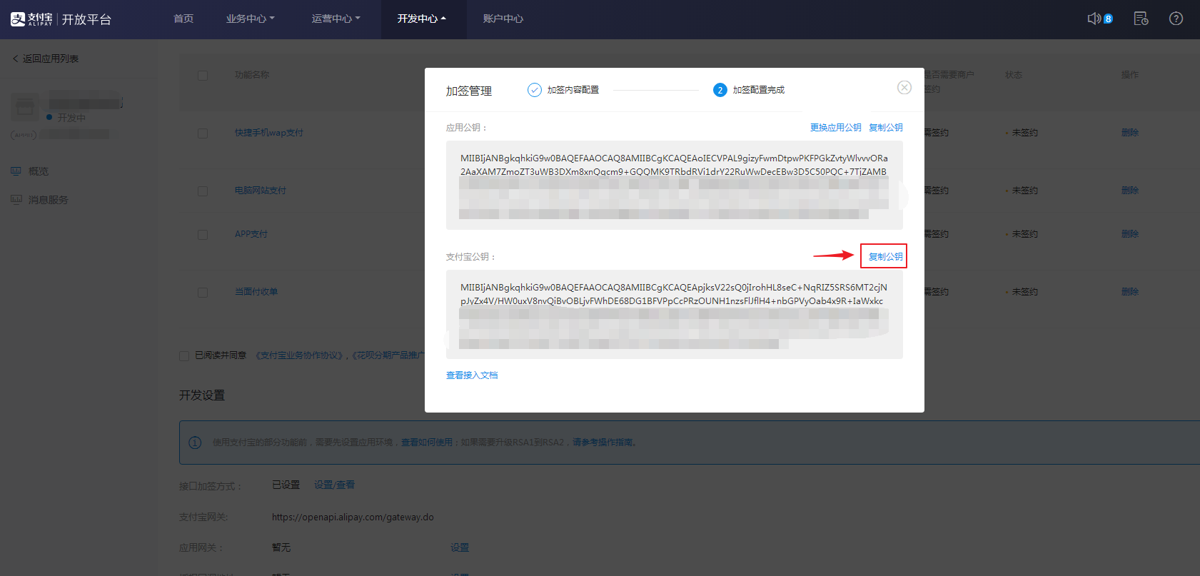 (注意:建站中需要填写的是支付宝公钥,支付宝公钥,支付宝公钥,而不是应用公钥!重要的事情说三遍!)