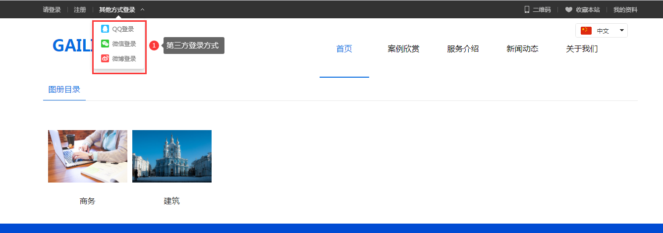 建站支持使用第三方登录方式,目前支持QQ登录、微信登录以及微博登录,进行申请并设置后即可在网站上使用。对比起站内注册,使用第三方登录方式更快捷灵活,方便用户实现快捷登录与注册,从而提高注册转化率。