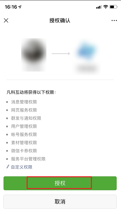 4. 避免授权后部分接口仍不可用,请选择全部权限(即直接点击授权按钮,不要做其他操作)。
